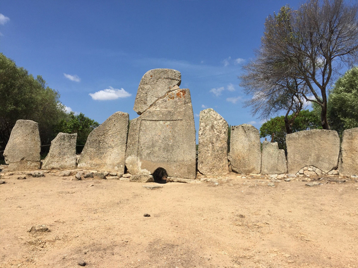 Immagine di apertura: Tomba di giganti arcaica Li Lolghi – Arzachena, miseramente ricomposta, con gravi errori di postura della stele e ricostruzione dell’esedra, che pare annoverare ortostati improvvisati, impropri o non congruenti